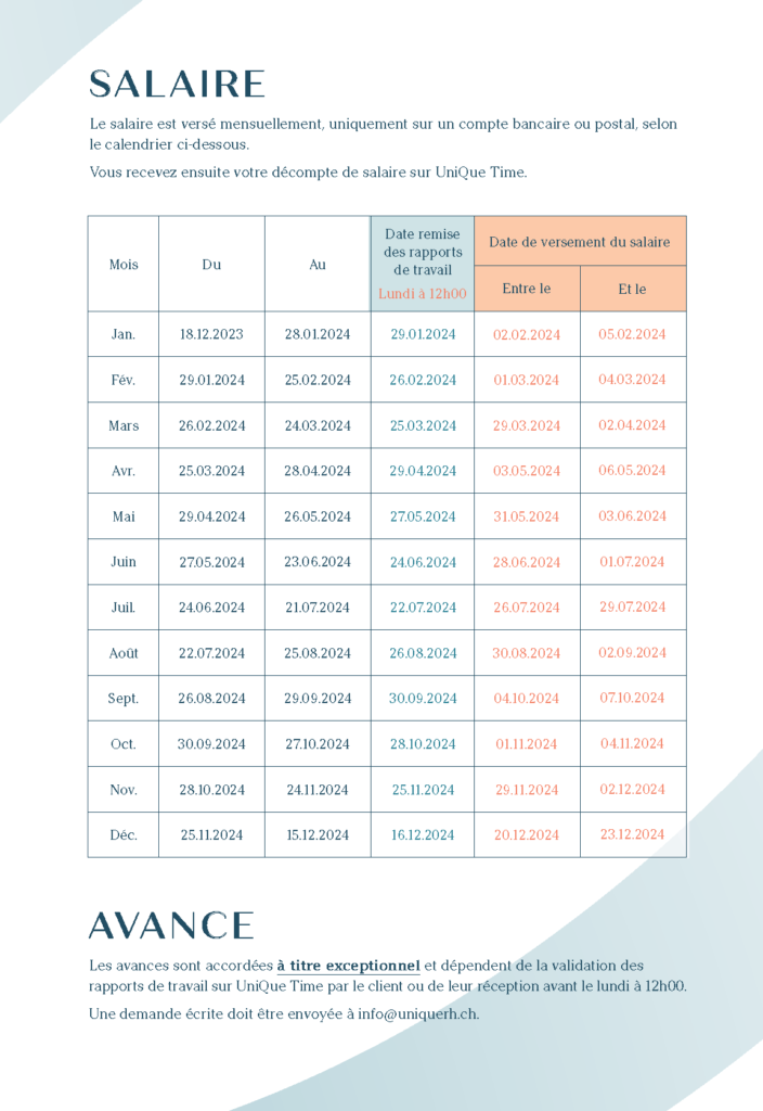 Pour vous assurer de recevoir votre salaire en temps voulu: